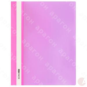 Папка-скоросшиватель без перфорации пластиковая. Формат – А4. Прозрачный верх. Толщина обложки – 120/160 мкм. Фактура – глянец. Цвет – розовый.