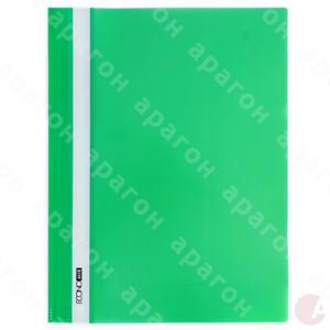 Папка-скоросшиватель без перфорации пластиковая. Формат – А4. Прозрачный верх. Толщина обложки – 120/160 мкм. Фактура – апельсин. Цвет – зеленый.