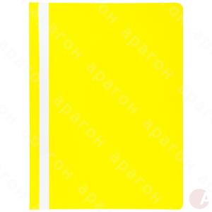 Папка-скоросшиватель без перфорации пластиковая. Формат – А4. Прозрачный верх. Сменный индекс. Толщина обложки – 100/130 мкм. Цвет - желтый.