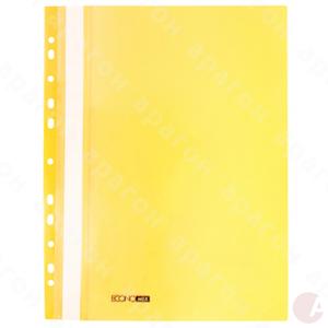 Папка-скоросшиватель с перфорацией пластиковая. Формат – А4. Прозрачный верх.Толщина обложки – 120/160 мкм. Фактура – апельсин. Цвет – желтый.