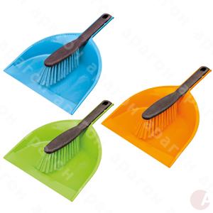 Комплект для уборки из пластика: щетка для подметания и совок для сбора мусора. Щетка имеет мягкий ворс из полиэстера.