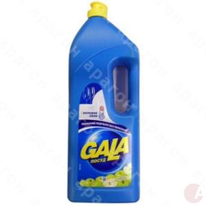 Жидкость для мытья посуды Gala. Легко и быстро удаляет следы жира даже в холодной воде. Применим и для мытья кухонного стола, кафеля, плиты, холодильника и полов. Мягко нежно относится к рукам. Объем - 1 л.