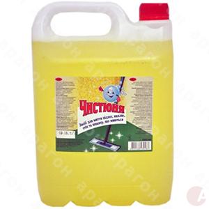 Средство для мытья полов Чистюня. Эффективно очищает полы, окрашенные стены, кафель, пластиковые поверхности и моющиеся обои. Эффективно действуют даже в холодной воде. Объем - 5 л.