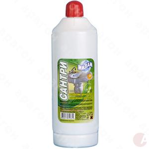 Санитарно-гигиеническое средство "Сантри Милам". Используется для удаления стойких пятен грязи, известкового налета и ржавчины. Объем - 1 л.