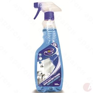 Средство для стекол Prok с триггером. Для загрязненных стеклянных поверхностей. Обеспечивает быстрое и полное удаление грязи, пыли с оконных, витринных, автомобильных стекол, в том числе зеркальных поверхностей. Не оставляет пятен и разводов. Объем - 500 мл.