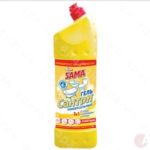 Универсальное чистящее средство "Сантри Сама" гель. Используется для удаления стойких пятен грязи, известкового налета и ржавчины. Объем - 1 л.