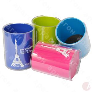 Стакан для ручек пластиковый. Четыре дизайна. Яркие цвета.