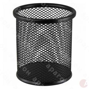 Подставка для ручек круглая. Изготовлена из металлической сетки. Сглаженные швы на изделиях для безопасности при использовании. Цельнометаллическое дно. Размер - 80х80х97 мм. Цвет - черный.