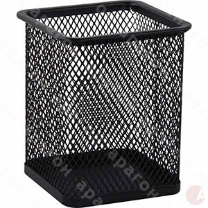 Подставка для ручек квадратная. Изготовлена из металлической сетки. Сглаженные швы на изделиях для безопасности при использовании. Цельнометаллическое дно. Размер - 80х80х95 мм. Цвет - черный.