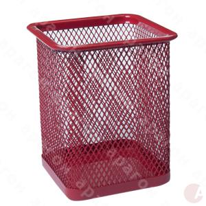 Подставка для ручек квадратная. Изготовлена из металлической сетки. Сглаженные швы на изделиях для безопасности при использовании. Цельнометаллическое дно. Размер - 80х80х95 мм. Цвет - красный.