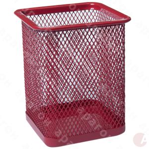 Подставка для ручек квадратная. Изготовлена из металлической сетки. Сглаженные швы на изделиях для безопасности при использовании. Цельнометаллическое дно. Размер - 80х80х95 мм. Цвет - красный.