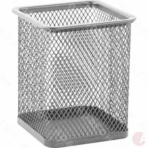 Подставка для ручек квадратная. Изготовлена из металлической сетки. Сглаженные швы на изделиях для безопасности при использовании. Цельнометаллическое дно. Размер - 80х80х95 мм. Цвет - серебристый.