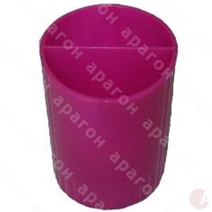 Стакан для ручек малиновый. Два отделения. Материал - пластик.
