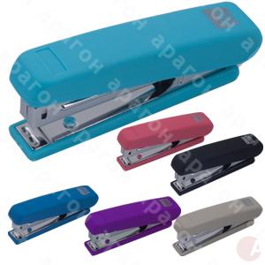 Степлер пластиковый "RUBBER TOUCH" для скоб №10. Пробивная мощность - до 12 листов. Тип скрепления: закрытый, прямой. Глубина закладки бумаги - 53 мм. Размеры степлера - 104х22х44 мм. Цвет корпуса - ассорти.