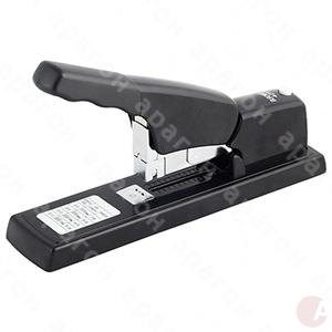 Степлер усиленной мощности для скоб №23/6; 23/8; №23/10; №23/13. Скрепляет до 100 листов бумаги 80г/м2. Металлическое основание подошвы, пластиковый рычаг. Прорезиненное покрытие основания подошвы предотвращает скольжение степлера по столешнице. Вставка из прорезиненного пластика на рычаге препятствует скольжению руки в процессе работы. Передвижная линейка позволяет регулировать глубину загрузки бумаги и точно определить место скрепления. Справочная таблица соответствия номера скобы и количества скрепляемых листов.