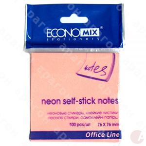 Стикер 76х76 неон розовый Economix 100л