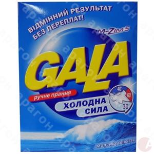 Стиральный порошок Gala для ручной стирки. Универсальное средство для стирки белых и цветных изделий из хлопковых, льняных и синтетических тканей. Белое становится еще белее. Вес - 400 г.