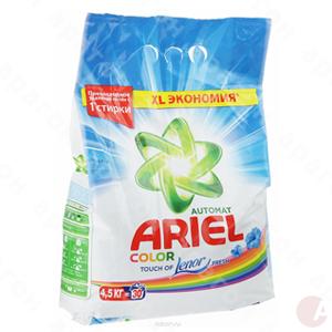 Стиральный порошок Ariel Колор автомат. Содержит специальные компоненты, которые помогут сохранить цвет ткани во время стирки и придадут вещам свежесть. Хорошо отстирает вещи даже в холодной воде благодаря специальным энзимам, которые начнут работать даже при низкой температуре. В порошке содержатся уникальные ингредиенты, которые помогают предохранять стиральную машинку от известкового налета и накипи. Вес - 4,5 кг.