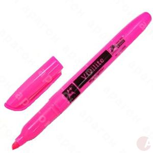 Маркер текстовый для всех видов бумаги. Яркие цвета. Клиновидный пишущий узел – 1-5 мм. Цвет чернил – розовый.