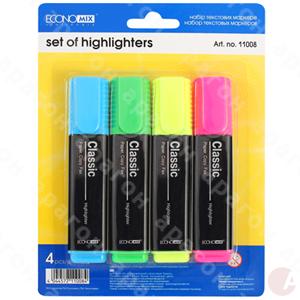 Набор маркеров текстовых для всех видов бумаги. Яркие цвета. Клиновидный пишущий узел – 1-4 мм. В блистере 4 маркера: синий, зеленый, розовый, желтый.