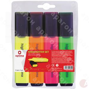 Набор маркеров текстовых для всех видов бумаги. Классический дизайн. Яркие флюоресцентные цвета. Увеличенный размер и наполение резервуара для чернил. В упаковке с подвесом 4 маркера - желтый, оранжевый, розовый, зеленый.