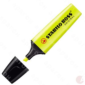 Маркер текстовый STABILO BOSS желтый. Для выделения текста на бумаге любого типа, яркие светоустойчивые чернила на водной основе, 2 варианта толщины линии: 2мм, 5мм, долгое время сохраняет работоспособность без колпачка, можно повторно заправлять чернилами.