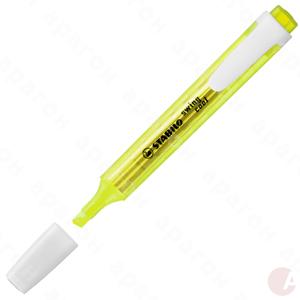 Маркер текстовый STABILO swing cool желтый. Карманный текстовыделитель с клипом, клиновидный наконечник, толщина линии: 1мм, 4мм, быстросохнущие флюоросцентные чернила долго сохраняющие яркость, длительная работоспособность без колпачка, возможность повторной заправки чернилами.