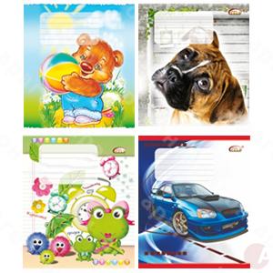 Тетрадь ученическая на 12 листов (косая). Блок – офсетная бумага 55 г/м2, белизна 100 CIE. Обложка полноцветная + УФ лак, мелованный картон "Аляска" 170 г/м2. Красные поля. Дизайн обложки – ассорти.