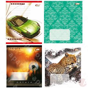 Тетрадь ученическая на 18 листов (клетка). Блок - офсетная бумага 60 г/м2, белизна 100 CIE. Обложка полноцветная + УФ лак, мелованный картон "Аляска" 200 г/м2. Красные поля. Дизайн обложки – ассорти.