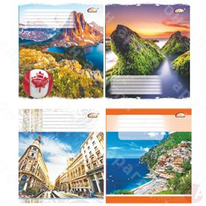Тетрадь ученическая на 60 листов (клетка). Блок – офсетная бумага 60 г/м2, белизна 100 CIE. Обложка полноцветная + УФ лак, мелованный картон "Аляска" 200 г/м2. Красные поля. Дизайн обложки – ассорти.