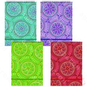Блокнот "Калейдоскоп" на 120 листов (клетка, бумага белая офсетная). На резинке. Верхняя спираль. Обложка - пластик с печатью. Формат - А5.