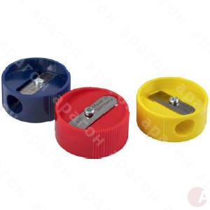 Точилка пластиковая. Лезвие из высокоуглеродной стали. Круглый корпус. Цвет – ассорти.