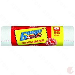Салфетка для пола "Бонус". Предназначена для мытья всех видов половых покрытий. Материал - хлопок. Размер - 50х60 см. Цвет - белый.