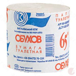 Туалетная бумага "Обухов 65". Материал - 100% вторичная целлюлоза. Количество слоев - 1.