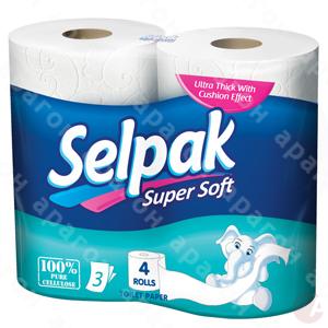 Туалетная бумага "Selpak" белая. Прочная и мягкая трехслойная туалетная бумага, изготовленная из натуральной целлюлозы, является экологически чистым продуктом. Материал - 100% целлюлоза. 200 отрывных листов в рулоне. В упаковке 4 рулона.