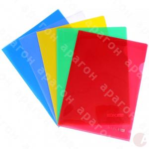 Уголок плотный пластиковый. Фактура – глянец. Толщина пластика - 180 мкм. Формат – А4. Цвет – ассорти.