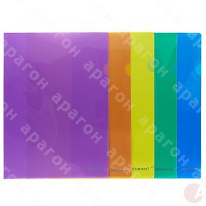 Уголок тонкий пластиковый. Фактура - глянец. Толщина пластика - 120 мкм. Формат - А4. Цвет - ассорти.