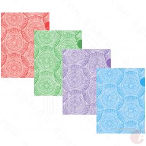 Уголок плотный пластиковый на три отделения. Фактура – глянец. Толщина пластика - 180 мкм. Формат – А4. Цвет – ассорти.