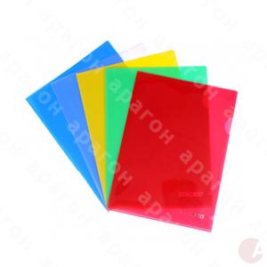 Уголок плотный пластиковый. Фактура – глянец. Толщина пластика - 180 мкм. Формат – А5. Цвет – ассорти.