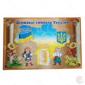 Уголок "Державні символи України". Материал - ПВХ. Отверстия для крепления по углам. Размер - 40х60 см.