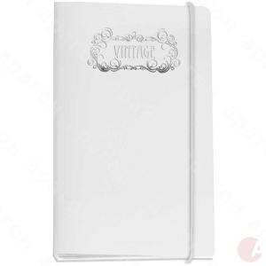 Визитница «Vintage» на 120 визиток. Гладкий глянцевый пластик декорированный фольгой. Белые тонированные файлы. Серебристая резинка. Толщина пластика – 0,6 мм.