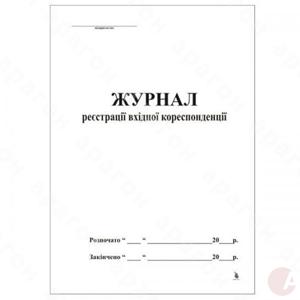 Журнал входящей корреспонденции на 100 листов. Бумага офсетная. Формат – А4. Книжная ориентация. Крепление блока – скоба.